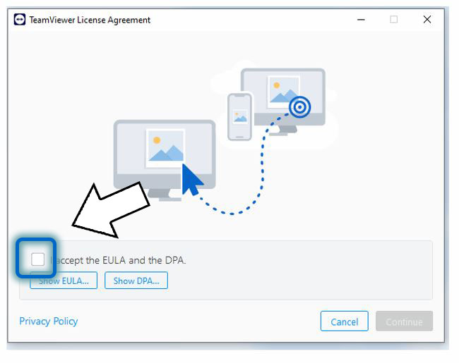 Click the EULA/DPA check box in order to proceed to the next stage.